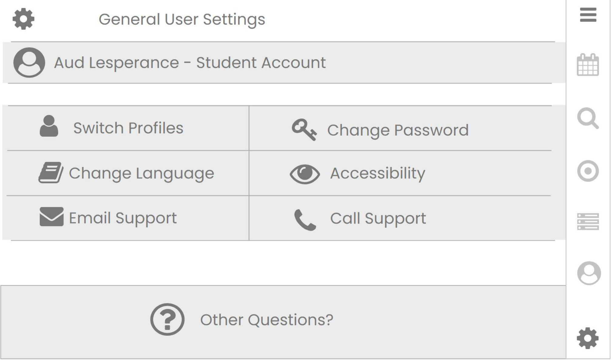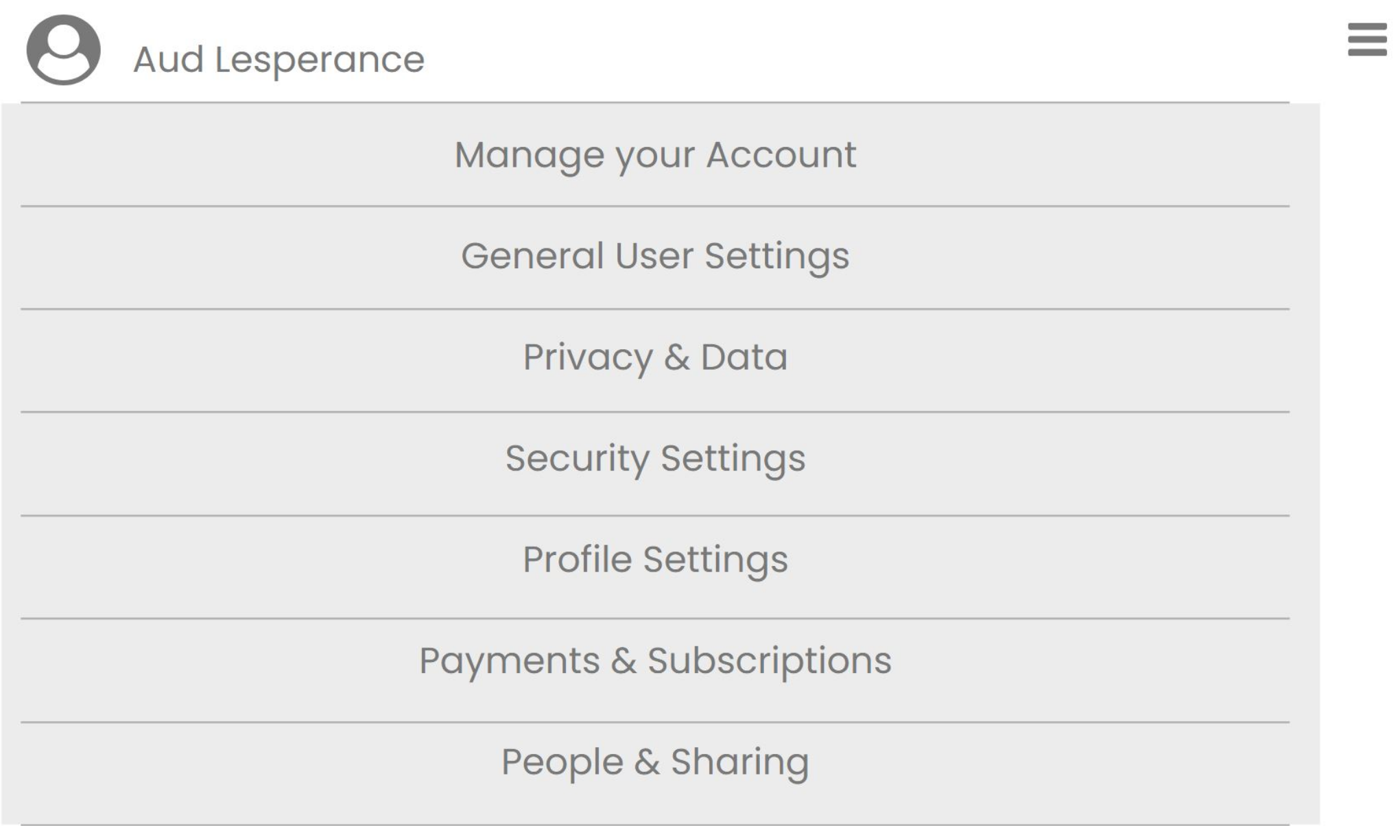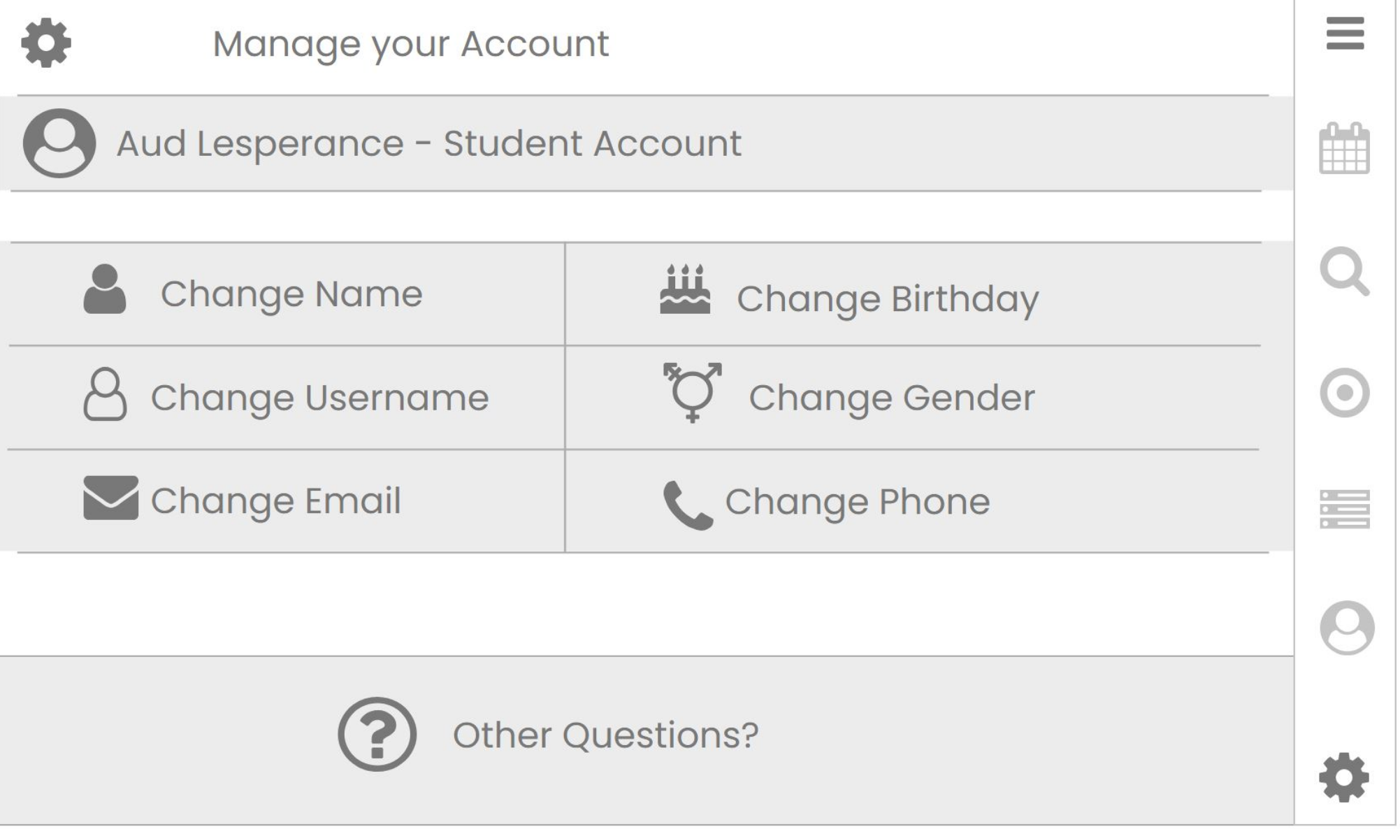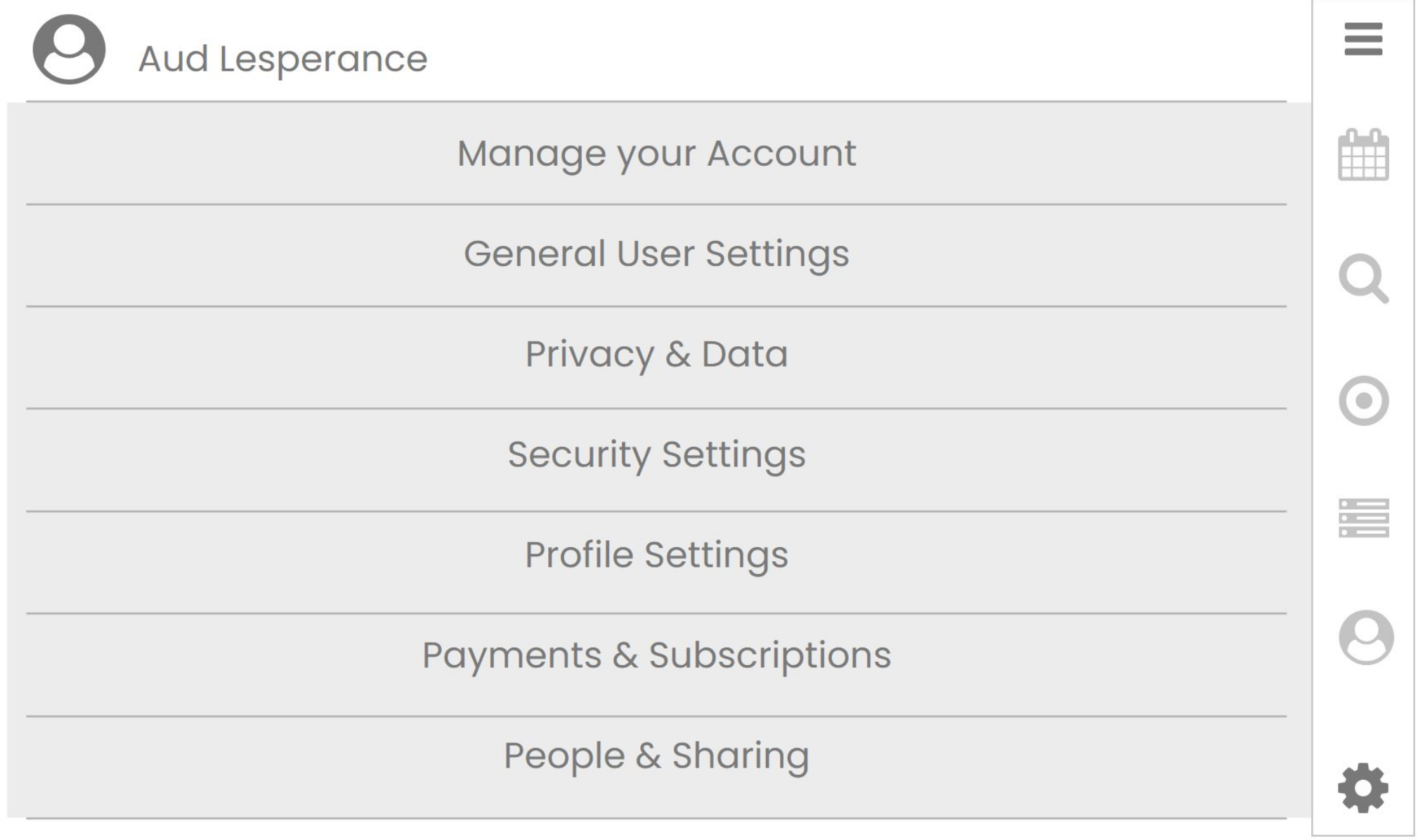 User Account Settings with Mini Menu