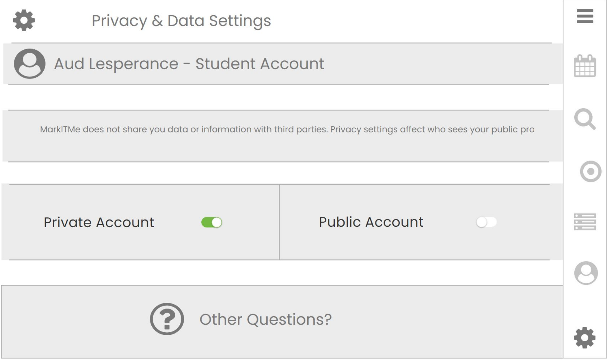 Privacy & Data Settings with Mini Menu