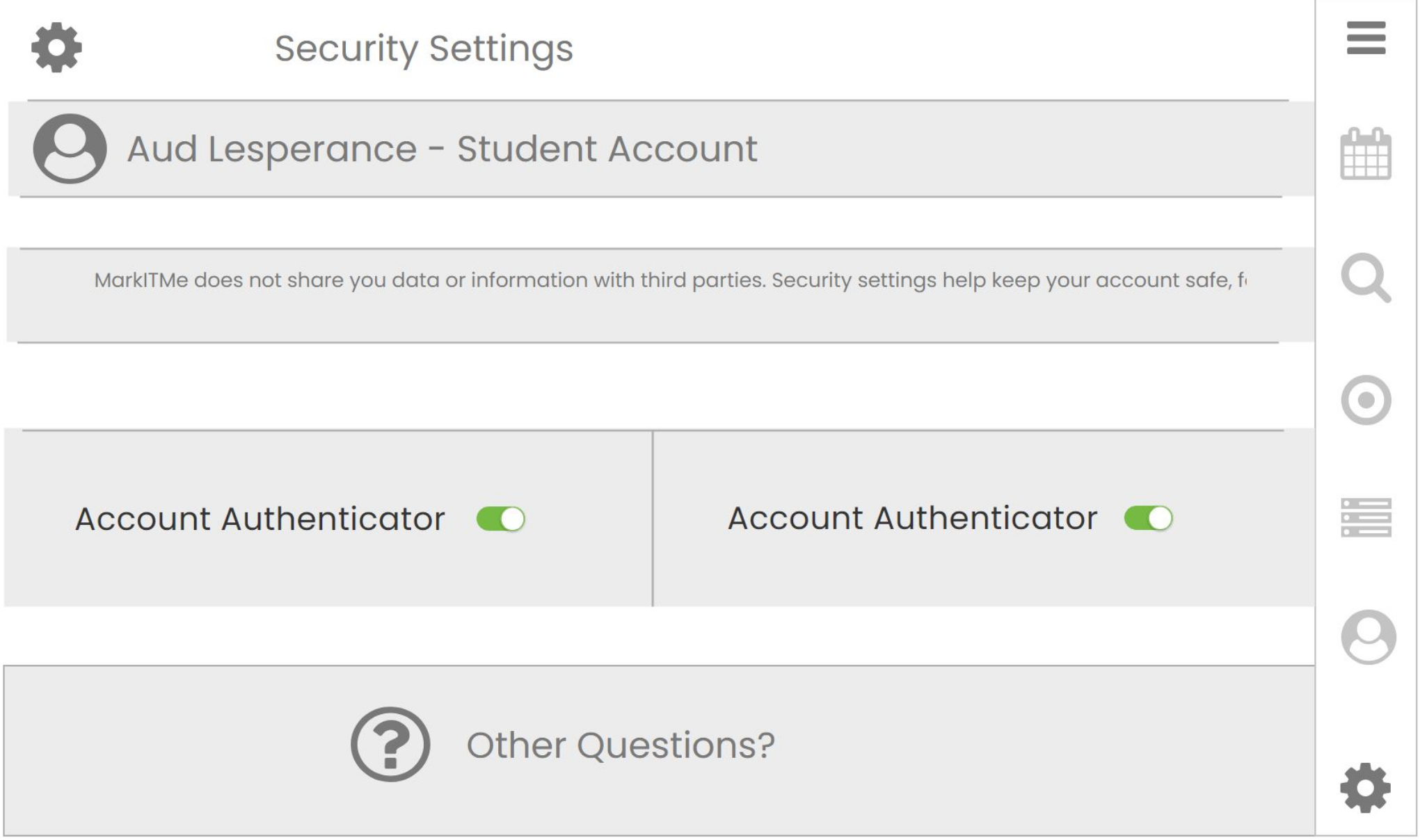 MarkItMe matters to the industry because it is a multifaceted experience. People of all walks of life can utilize this application in their day to day life. MarkItMe helps individuals by allowing them to learn new skill sets,and exercise that make stressful situations more manageable. It can also help those with Learning Disabilities stay organized with their daily activities,like school, work, personal appointments and events. The market for MarkItMe is always growing, people will constantly need assistance with organization, time management, and a variety of skill sets; for a variety of reasons.