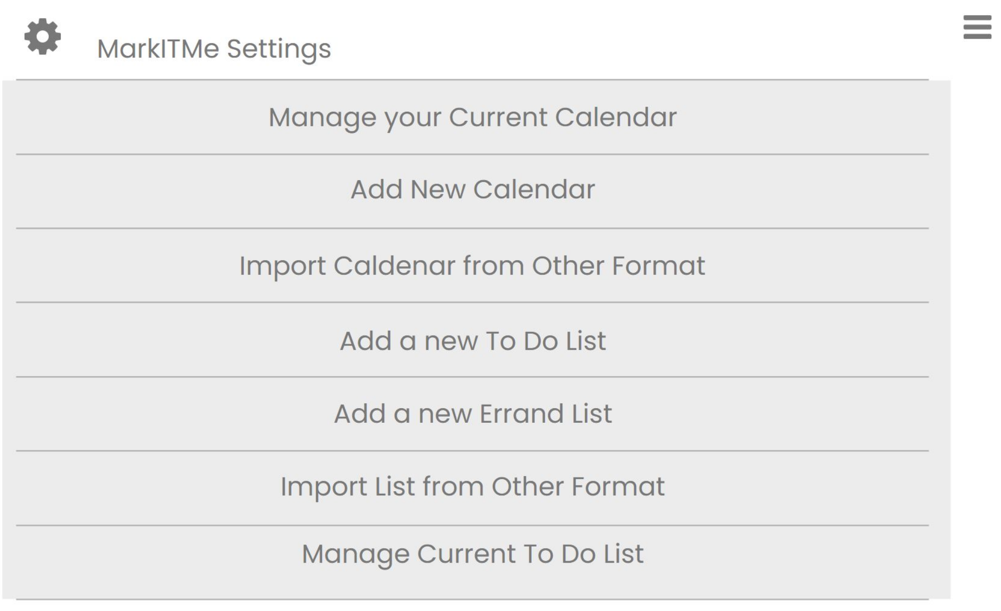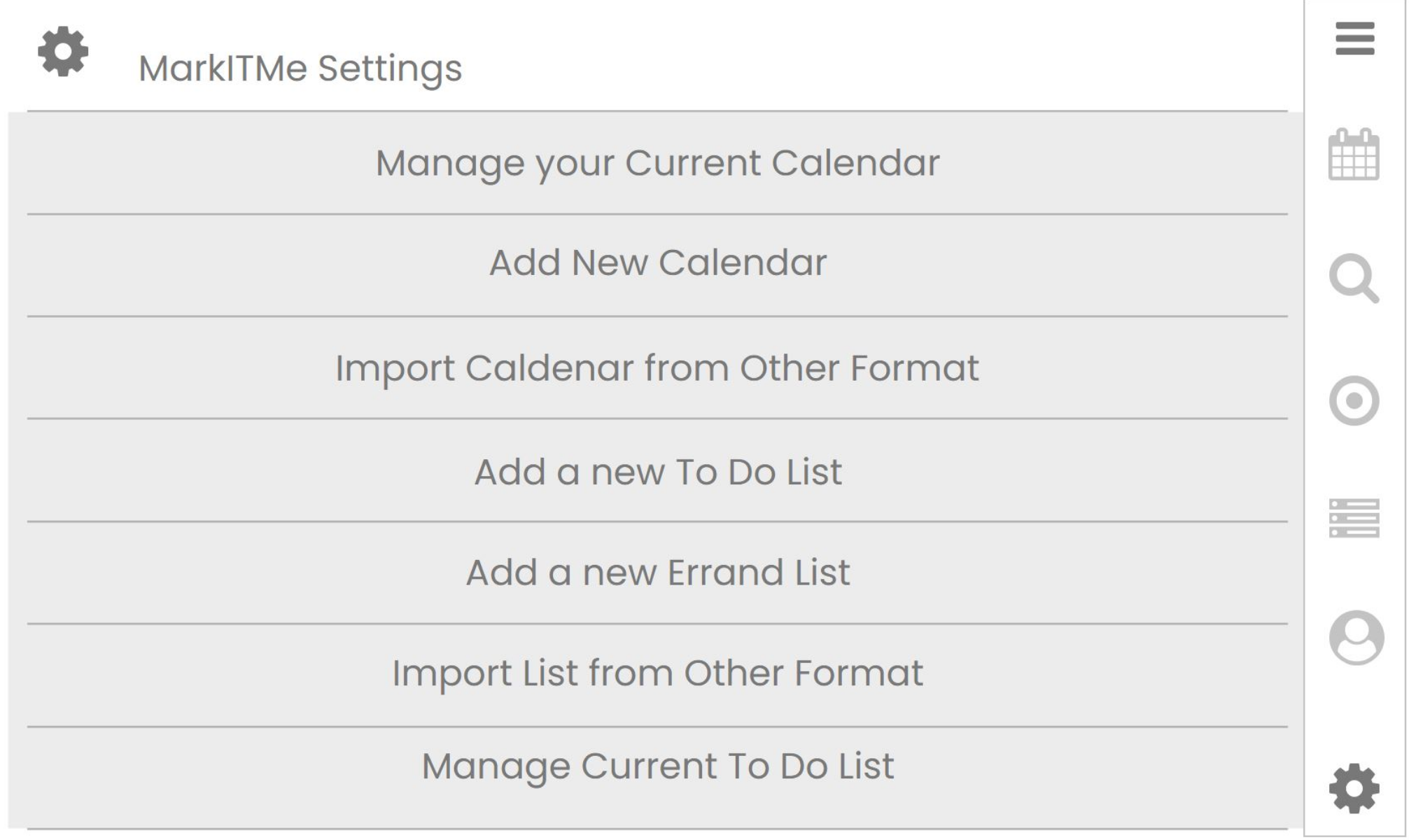 Home Page Calendar & MarkITMe Calendar & Lists Menu