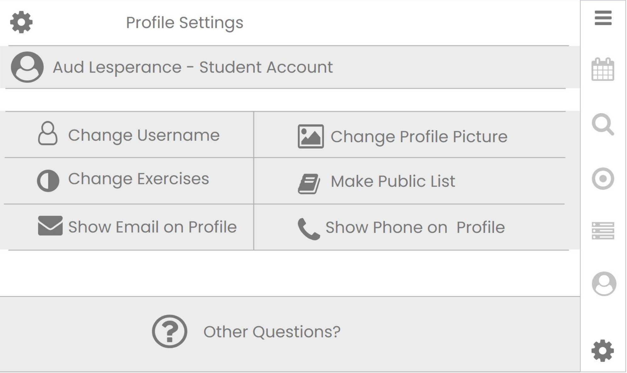Profile Settings with Mini Menu