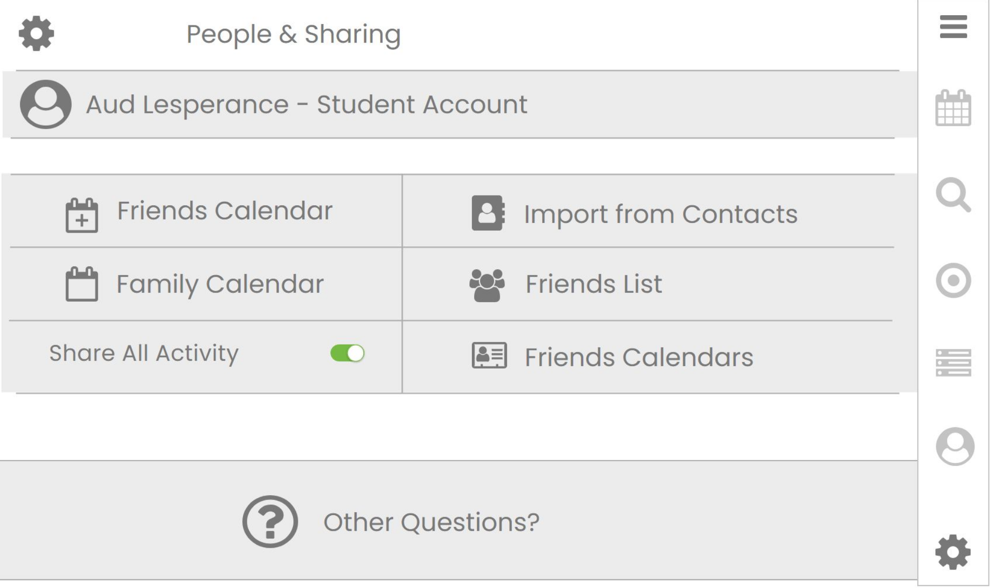 People & Sharing Settings with Mini Menu