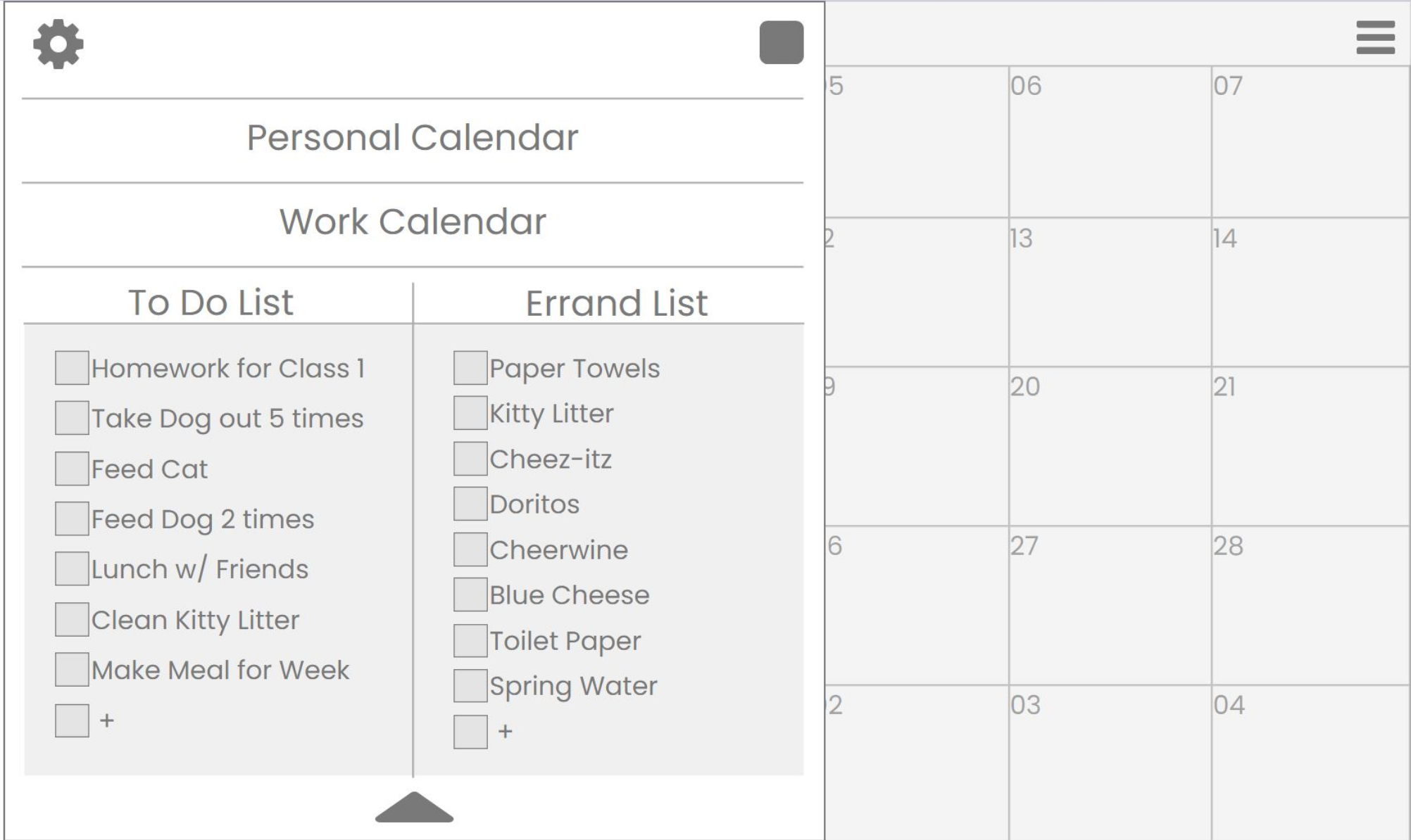 Home Page Calendar & New Errand List