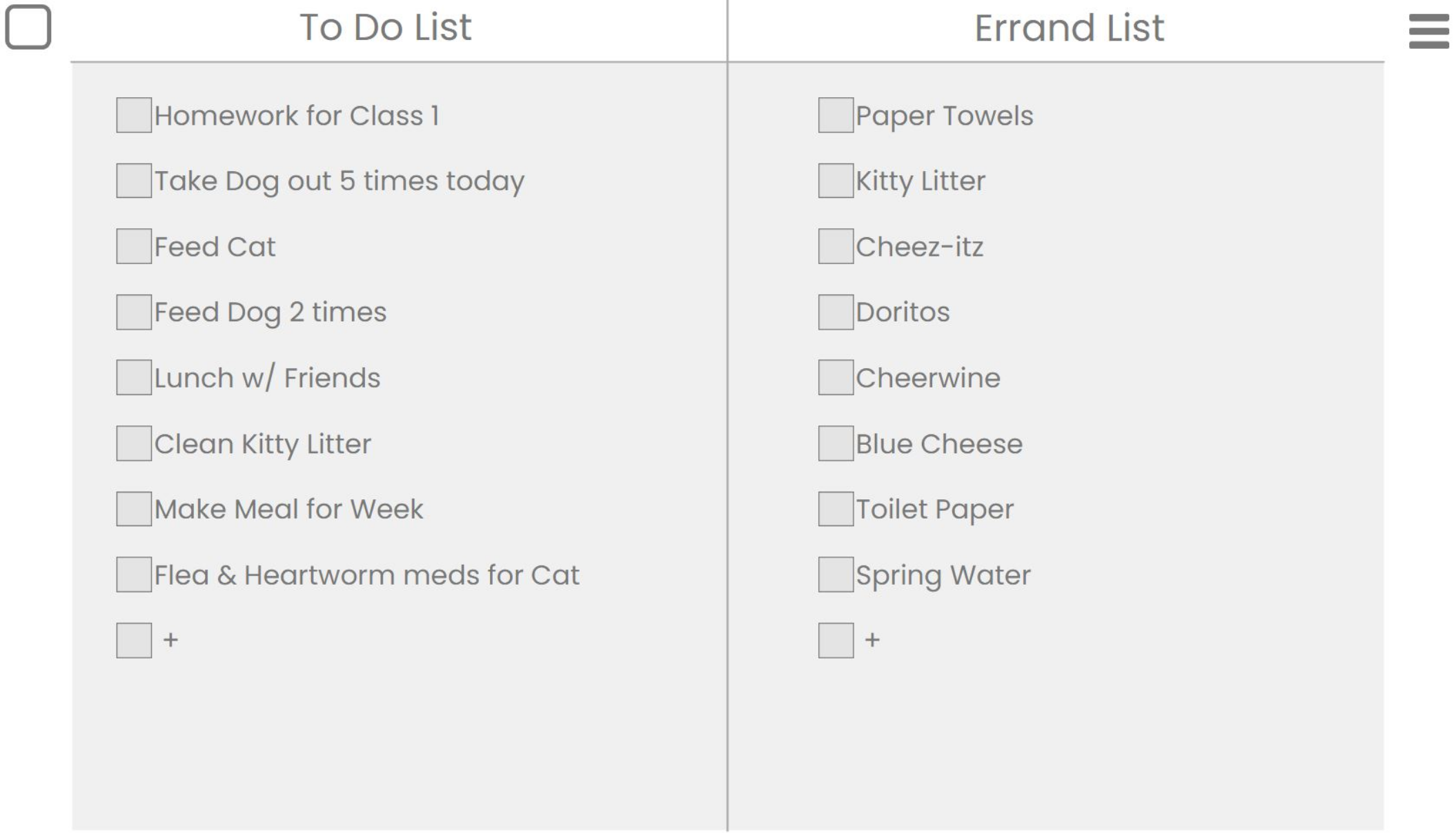 To-Do & Errand Lists With Mini Menu