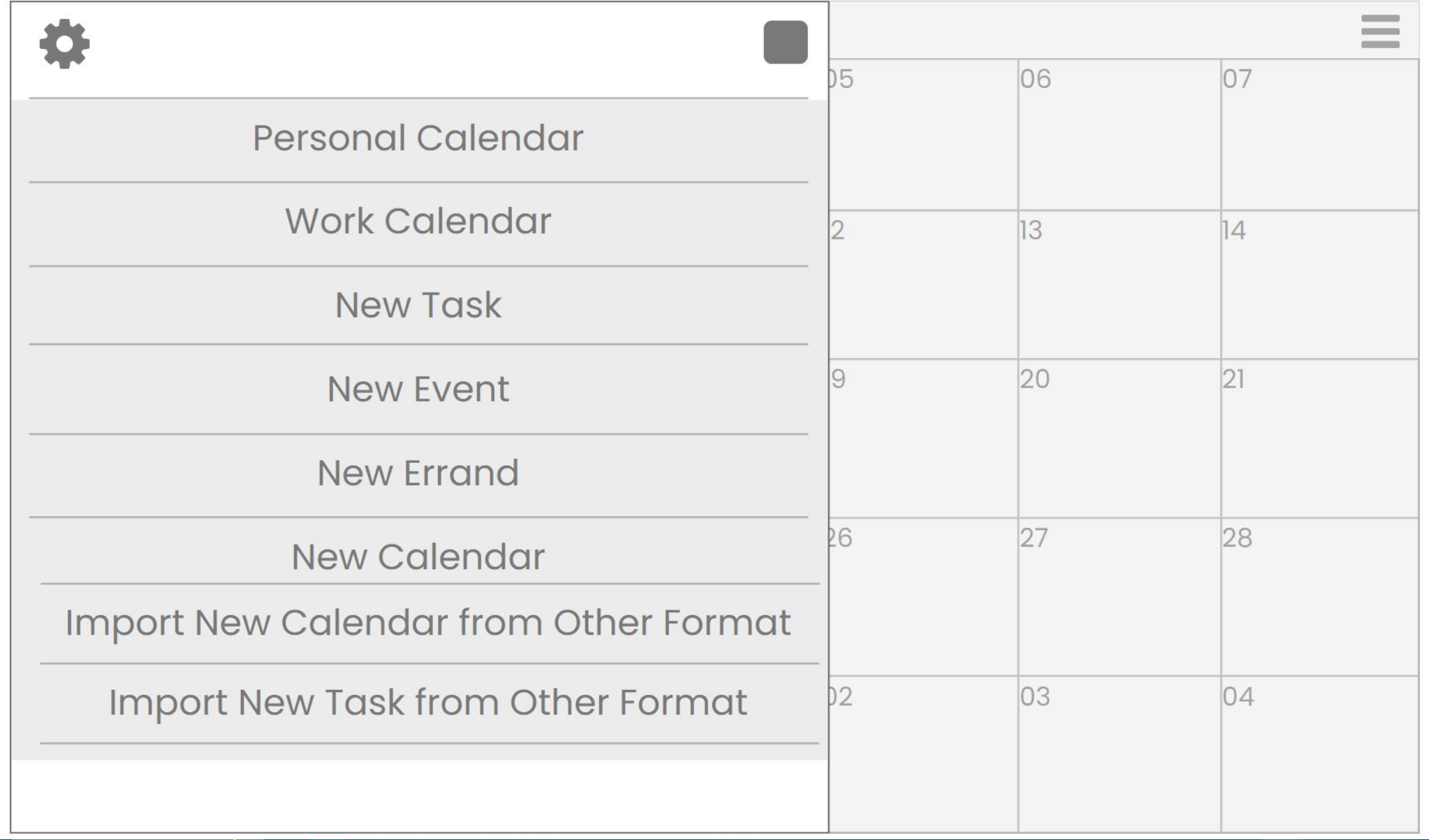 Import Calendar with Mini Menu